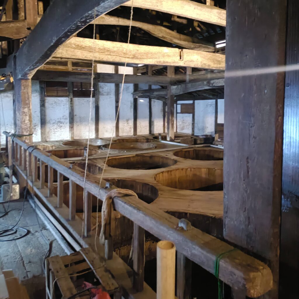とてつもなく大きな樽の中に、熟成中のもろみ。